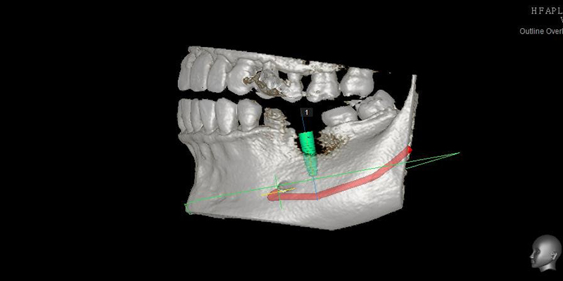 數位化3D 的電腦斷層掃瞄,提供了傳統平面X光無法判讀的訊息,如牙床骨的深度、厚度以及角度,還有重要的神經、血管與鼻竇所在的位置。有了這些電腦分析的數值,就如同擁有了虛擬視覺,可直接進入植牙手術區域探索牙床的內部結構。醫師因而能在手術前事先做好治療計畫與準備,將手術風險降到最低,保障患者安全。
